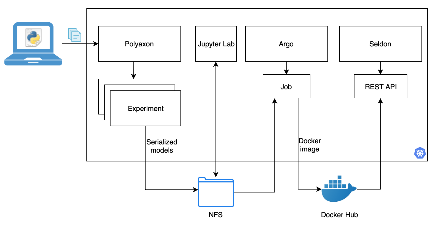All the code needed to follow along can be found here: danielfrg/polyaxon-argo-seldon-example. Locally you won’t need much more than a couple of client CLIs and clone a couple of repos.