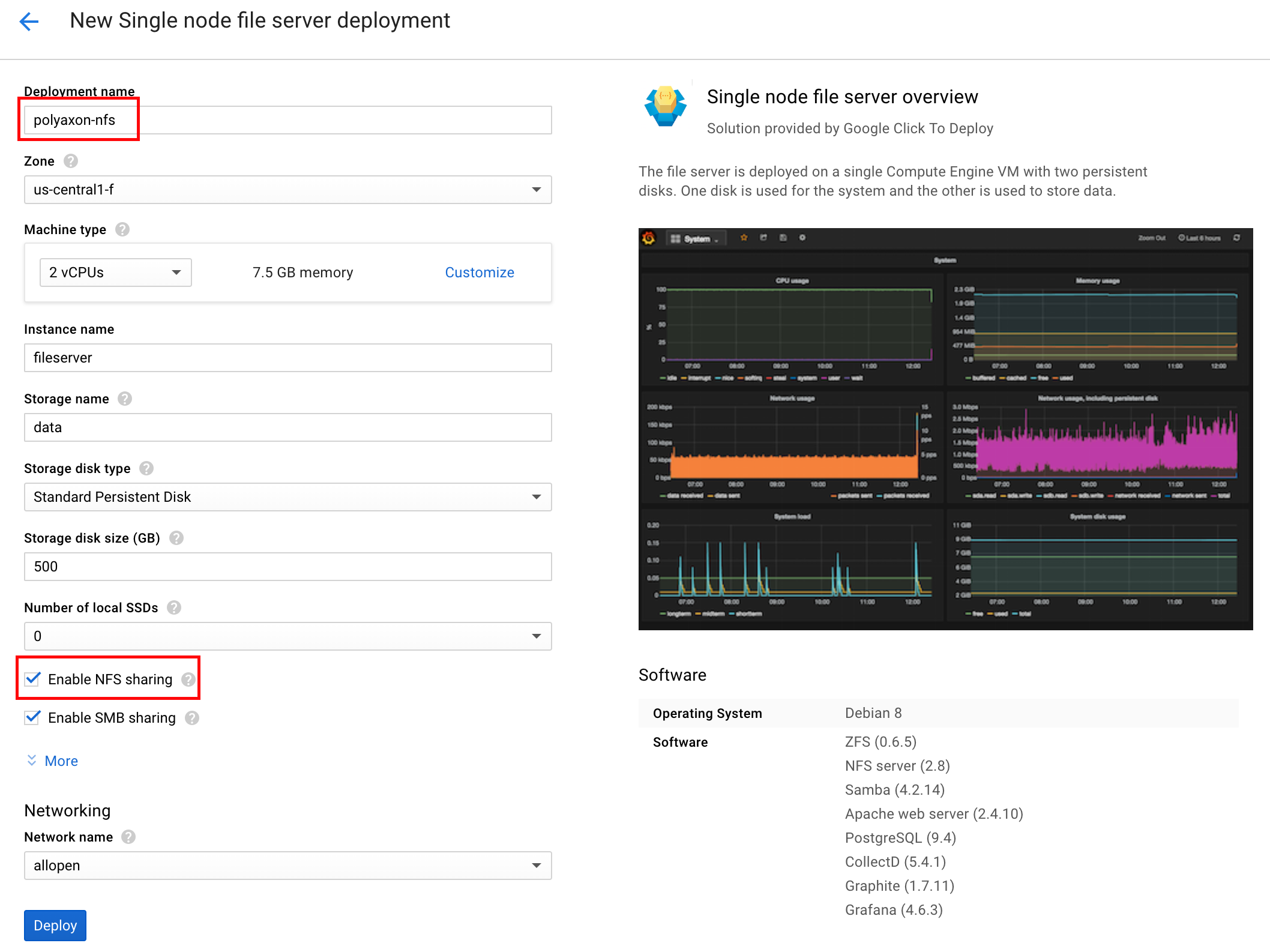 This is where all the code, models and data is saved. It’s super easy to create one using the this GCP Single node file server template.