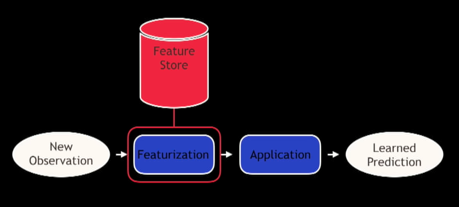 The Feature Store is kinda a caching layer (pre materializing the feature information for an user or a client) for all that process so you can just look up what features are associated with a model and take the parameters for that model and apply them.
