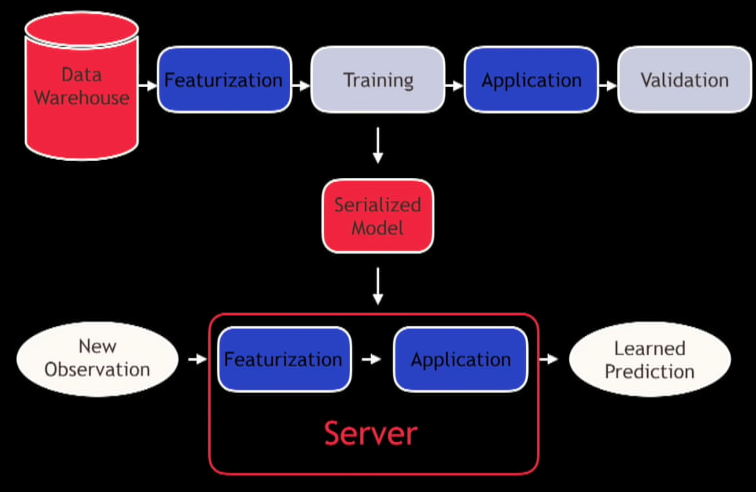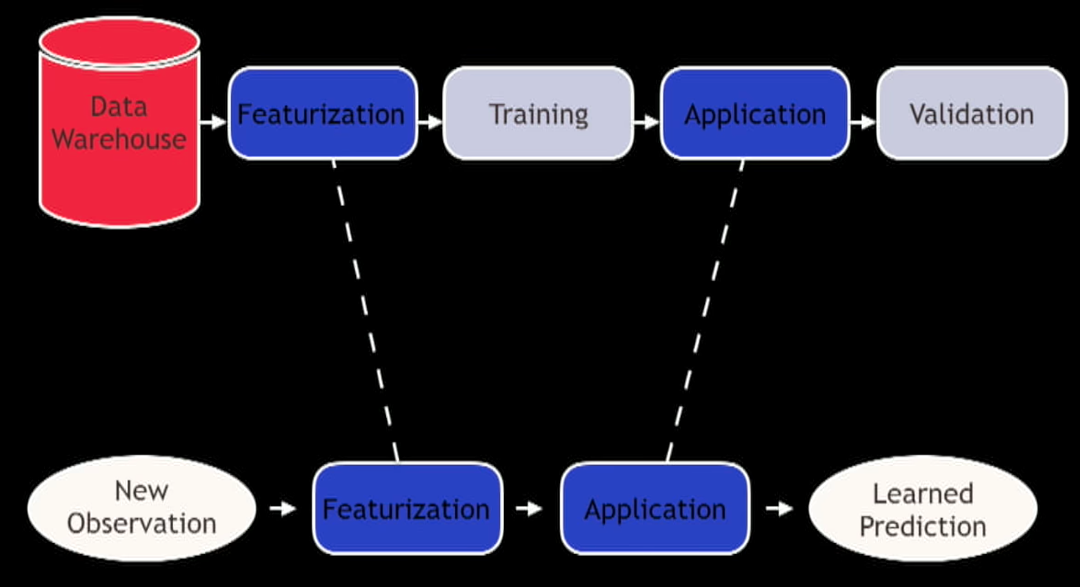 As we saw what we deploy into production is a Featurization step and an Application step.