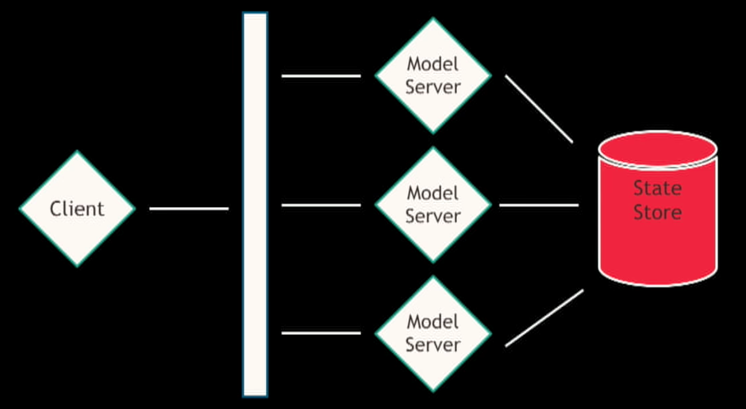 At StichFix the State Store is like a database for model parameters. So when a model is updated features and weights get pushed to the State Store and the Models Servers know how to read the data and update the parameters that are being used for applying data.