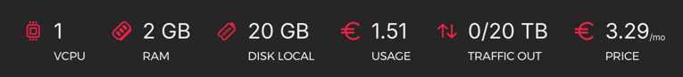 Very important was also the price of 3.29 EUR (3.6 USD) for a 2 vCPU and 2 GiB. Cheap!