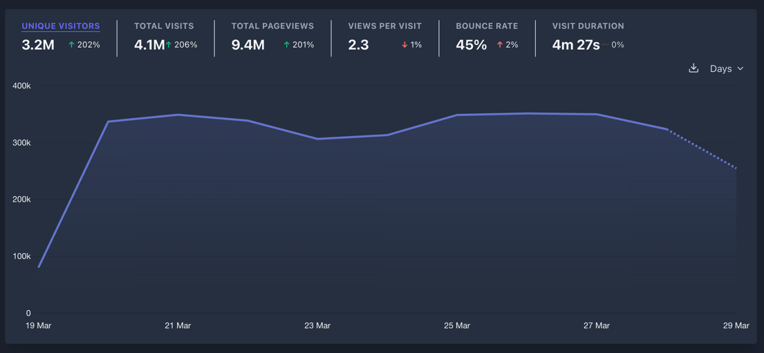 Plausible is the most common alternative when it comes to that. The problem? It’s paid. I would have no problem paying them 10 dollars per month but that only gives you 10k monthly page views. My post popular game has 1.5 monthly million users and more than 3 million page views per month. I would have to be in the 5 million page views per month plan of plausible which is 129 USD. Thats too much for something that I get for free from Google specially compared to the revenue I get from Ads. Keep in mind that while there are a lot of page views I don’t run that many ads on them because the space for the game is limited, everyone plays on their phone, and in countries with low CPM.